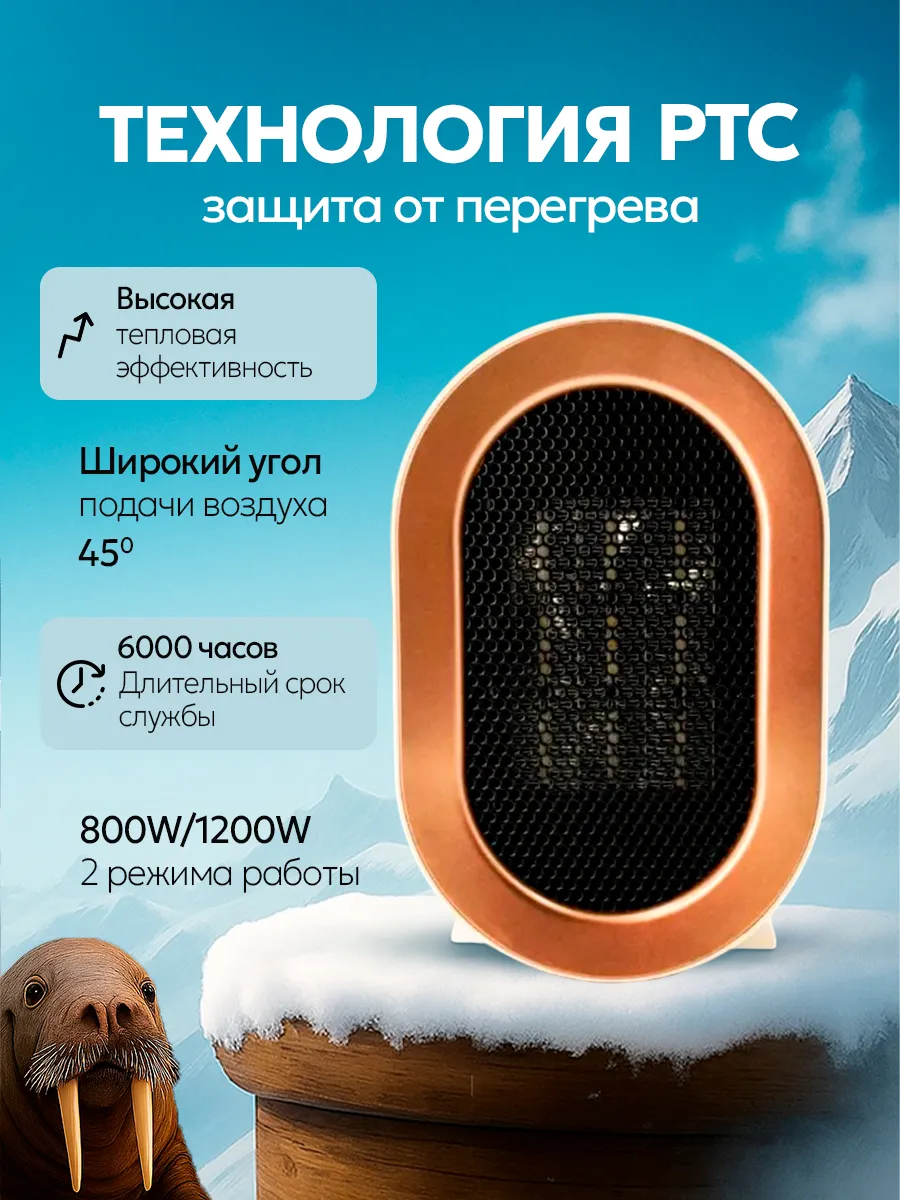 Портативный обогреватель станет вашим верным помощником в борьбе с холодом! Модель работает на основе технологии РТС, которая обеспечивает высокую эффективность, надежность и долговечность. Два мощных режима (800 Вт и 1200 Вт) позволяют быстро прогреть как небольшую комнату, так и более просторное помещение. Благодаря качественным материалам и продуманной конструкции, обогреватель рассчитан на длительный срок службы и потребляет значительно меньше электроэнергии.